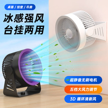 壁掛桌面風扇家用廚房充電搖頭戶外露營便攜式循環遙控電風扇夜燈